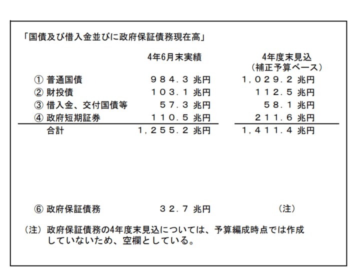 【国の借金】2022年6月末実績・2022年度末見込(補正予算ベース)