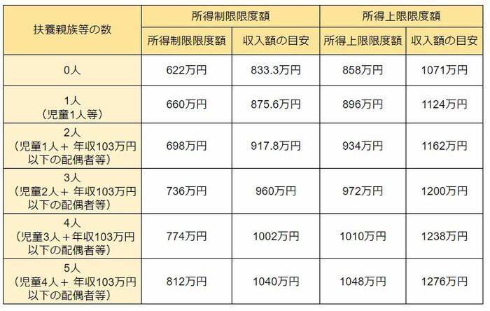 所得制限限度額と所得上限限度額