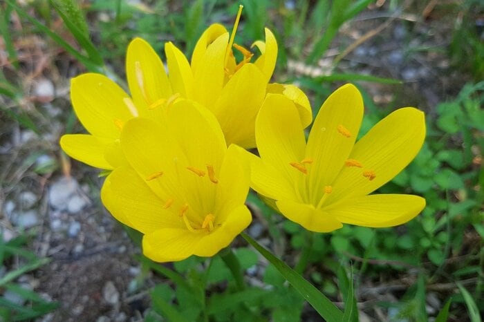 クロッカスに似た黄色の花が可憐なステルンベルギア。「キバナタマスダレ」という和名を持ち、開花時期は9~10月です。
