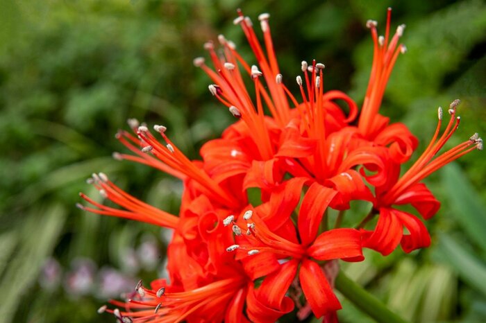 ヒガンバナによく似た花姿が目を引くネリネ。花弁が宝石のように輝いてキレイなところから、「ダイアモンドリリー」とも呼ばれています。ユリに似た小さな花が集まりゴージャスな雰囲気。