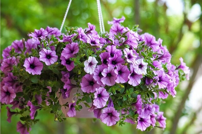 庭や鉢はもちろん、ハンギングに植えて空中花壇としても楽しめるペチュニア。春から秋にかけて開花します。