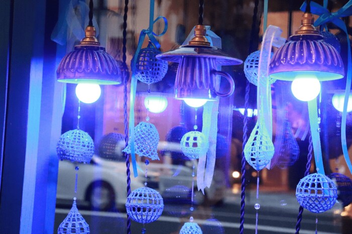 ひらひらと舞い踊るようにうつくしく並べられたカーテンは、かつて池袋マルイの一階でポップアップストアが展開されていた際に、【Picaresque(Twitter:@picaresque)】のクリエイターが窓越しに広がるEVERBLUEBLUEの空間から着想を得て製作したものです。