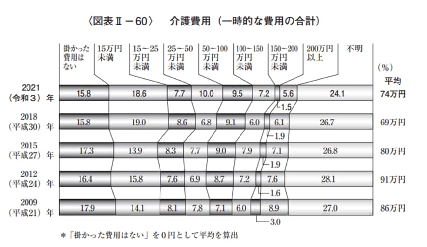 また、住宅改造や介護用ベッドの購入費など一時的な費用の合計は平均74万円となっています。
