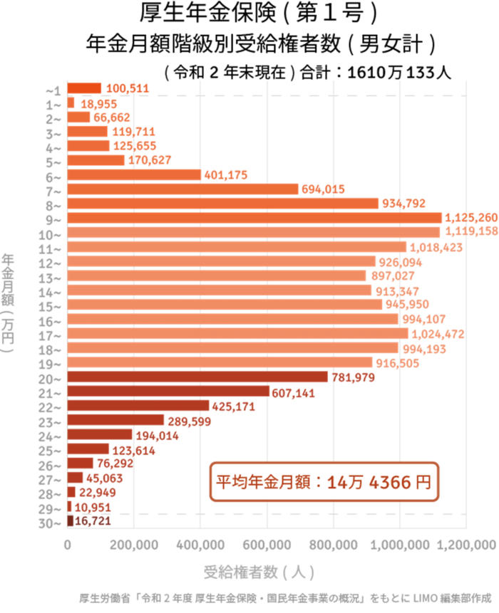 続いて厚生労働省の同資料から、厚生年金の平均月額もチェックしていきましょう。