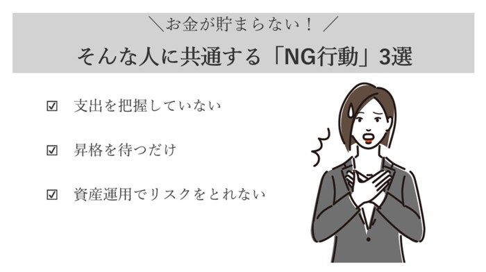 今回は「お金が貯まらない人」に共通する3つの特徴を「お金を貯める方法」とともに紹介してきました。