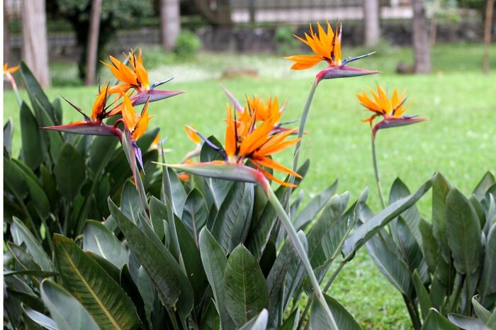 ストレリチアはトロピカルな雰囲気のある植物。鳥に似たオレンジ色の花でよく知られています。細い茎に広がる大きな葉がスタイリッシュです。※参考価格:2000~5000円前後(4号鉢)