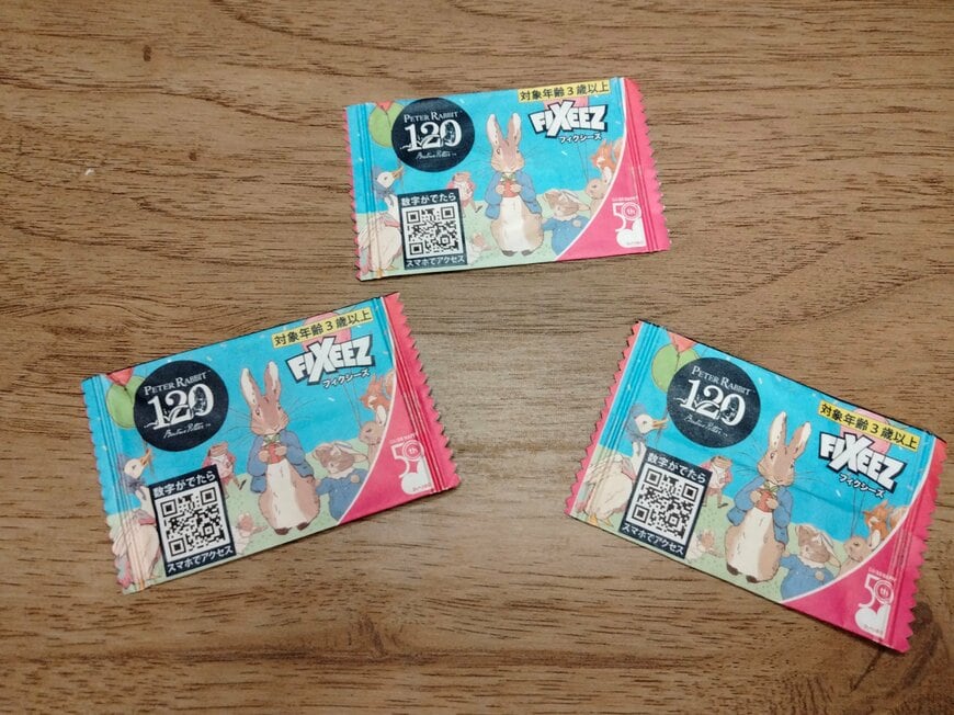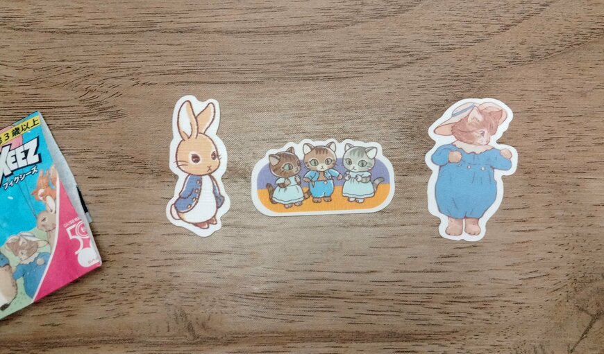 筆者は、「ピーターラビット」「子猫の3きょうだい」「こねこのトム」の3つが当たりました。なお、それぞれ最大辺が4㎝くらいです。