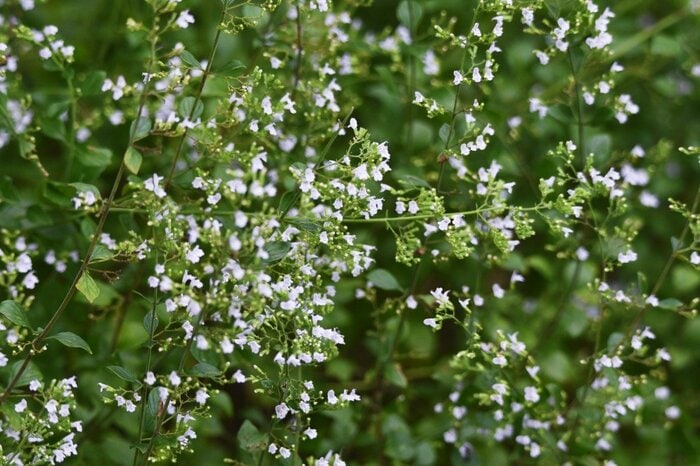 細い枝に咲く小さな花が可憐なカラミンサ。繊細でふんわりとした優しさがあります。花色は白や薄紫、ピンクなど。ミントに似た爽やかな香りが漂います。