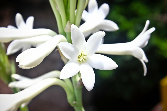 夏から秋にかけてスイセンに似た純白の花を咲かせるチューベローズ。フローラル系の甘い香りが魅力的です。夜になるとさらに官能的な香りになり、「月下香(げっかこう)」とも呼ばれています。