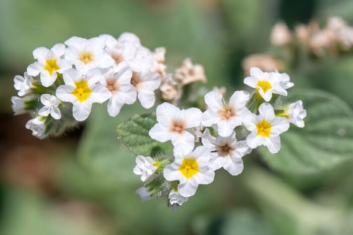 ヘリオトロープはバニラのような香りが特徴。春から秋にかけて咲く青紫や白の花が可憐です。ハーブの一種ですが食用には向いておらず、香りを楽しむ目的で栽培されています。