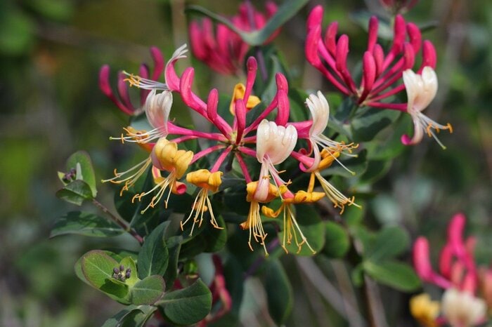 ユニークなかたちでミツバチを誘う「ハニーサックル」