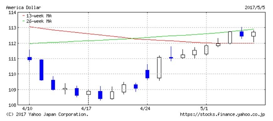 日本の大型連休(GW)の最中も、フランス大統領選の第1回投票を契機にスタートしたリスクオン相場は継続し、ドル円は一時113円になりました。決選投票で無所属のマクロン氏の当選がほぼ決定したフランス大統領選を受けての今週の為替市場では、リスクオン相場が継続するかどうかに注目です。