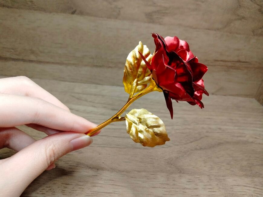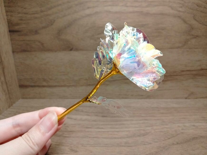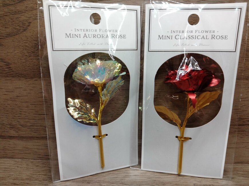 こちらがセリアで購入できるオーロラローズです。同じサイズで、ベロアのような光沢感があるクラシカルローズも販売されています。