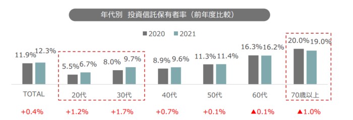 「投資信託」保有者率は70歳以上が最多も、20~30歳代の伸び大きく