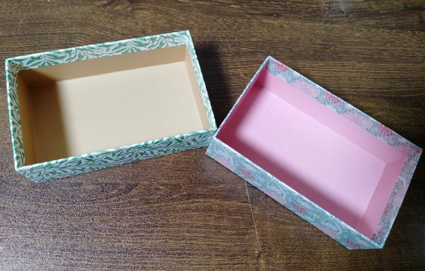 【セリア】ウィリアム・モリスのペーパーボックスは金押しや内側の色紙が魅力