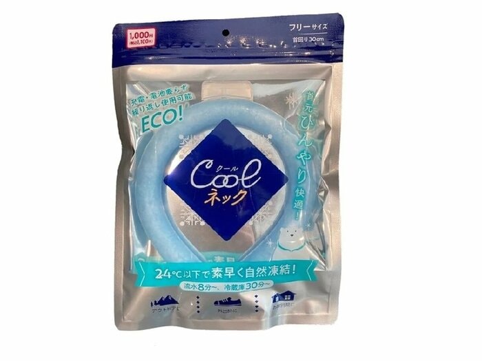 「あのダイソーからもクールネックが出た!」と話題の商品。24度以下で素早く自然凍結し、繰り返し使用できます。こちらの商品は、流水8分で凍るところもポイントです。ワンサイズのみの展開ですが、同じくDAISOから「クールネックバンドM/L」(各税込1100円)がそれぞれ発売されているので、こちらも要チェック。注目のアイテムをリーズナブルに試したい人におすすめです。