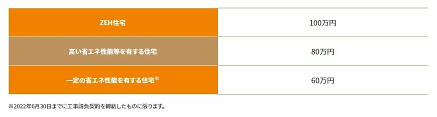 補助額は住宅の省エネ性能によって以下のように異なります。