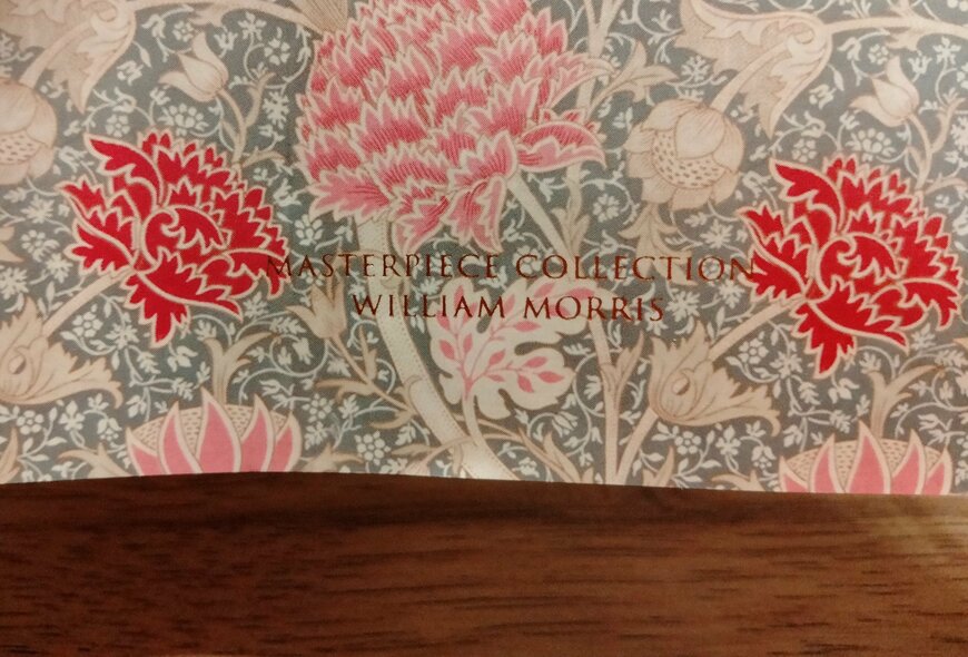「2023年」という文字や「MASTERPIECE COLLECTION WILLIAM MORRIS」というロゴが金押し風にデザインされていて高級感があります。