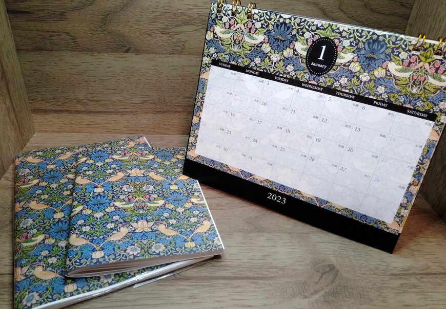 【セリア】ウィリアム・モリスの卓上カレンダーはおそろいの手帳がセリアにある!