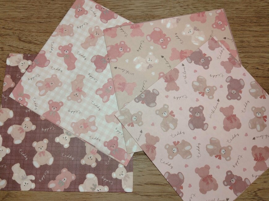 【セリア】のフラッフィーテディのデザインペーパーの柄は4パターン