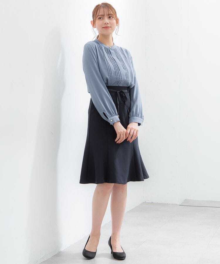 もちろんスカートとの相性も抜群です。セレモニーや仕事用のきれいめスカートとも合わせやすいです。