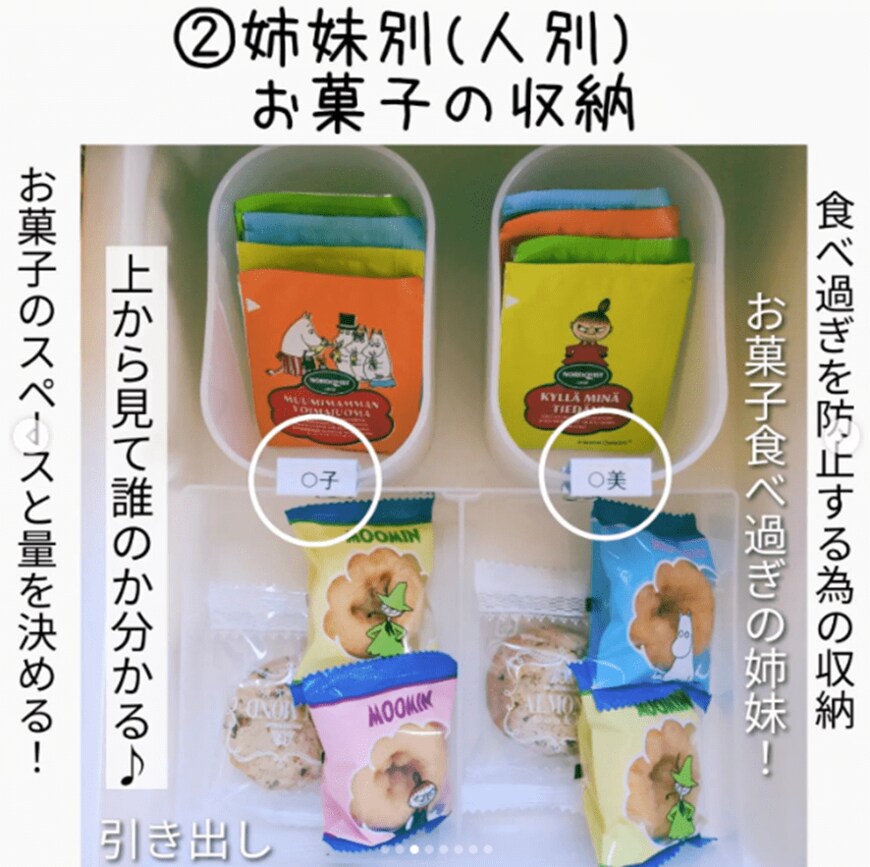 ダイソーのダブルクリップ活用術2. 【家族別】お菓子の収納