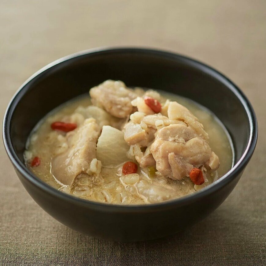 こちらが無印良品のサムゲタンです。画像のように、鶏肉や大根など具材がたっぷりと入っています。冷凍食品ですので、温めるだけの簡単調理で食べられます。
