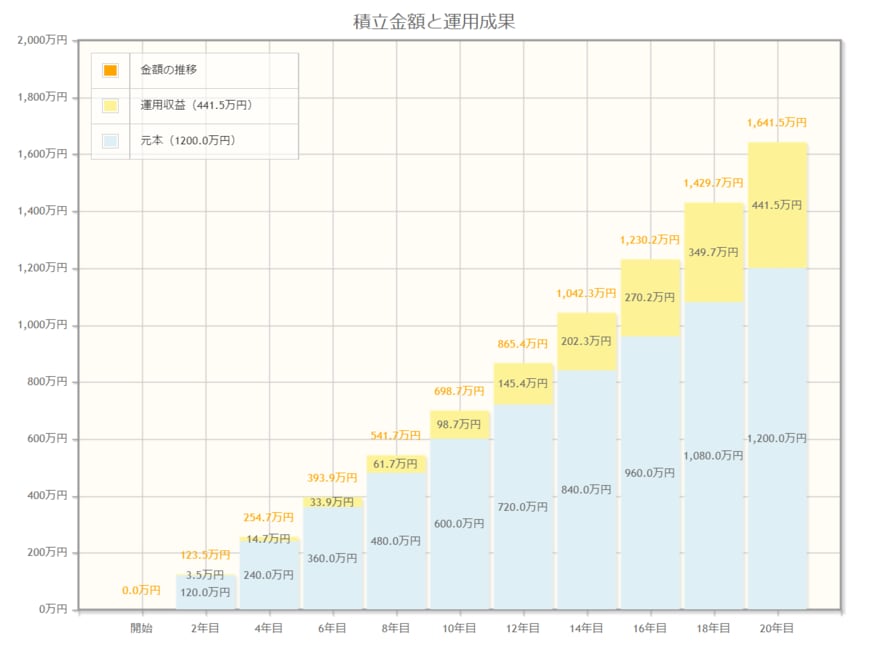 5%では約2055万円になり、「老後2000万円」も達成となりますね。