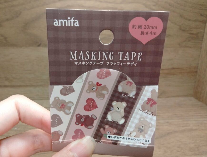 ここからはそれぞれのマスキングテープのデザインをご紹介していきます。まずは、「フラッフィーテディ」です。幅約2cm×長さ約4mのマスキングテープです。