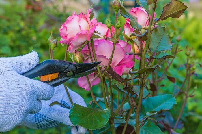四季咲きのバラは秋になるとまたキレイな花を咲かせます。そのために遅くとも中旬までには剪定しておくことがポイント。先端から1/3程度枝を切り落とします。