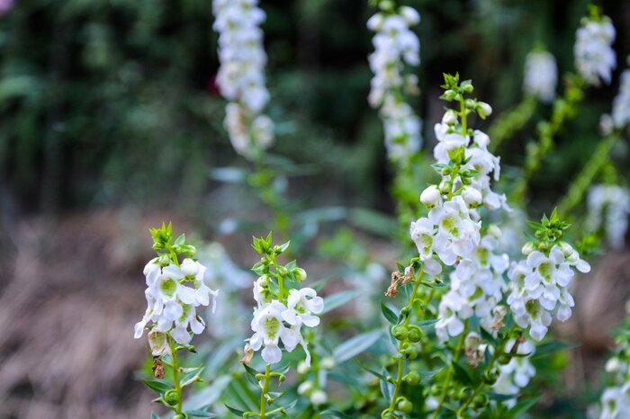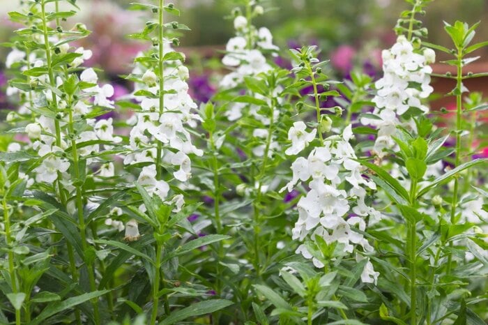 透明感のある可憐な花を穂状に咲かせるアンゲロニア。初夏から秋にかけて開花する多年草ですが、越冬が難しく日本では一年草として育てられています。