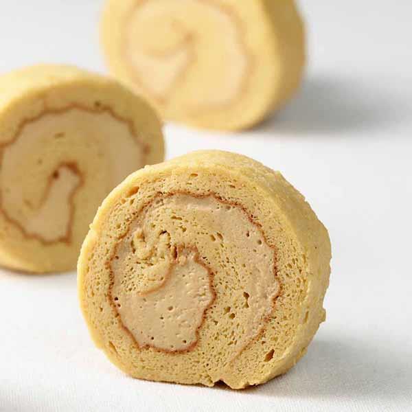 今回登場した中でも特に気になるのが、「六花ロール(プラリネ)」です。こちらは通販オリジナルで、アーモンドプラリネ入りのクリームとキャラメル風味のスポンジが良く合う商品です。