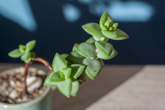 同じクラッスラ属の「南十字星」も、秋に赤く紅葉するオススメの品種。どちらもハンサムな顔をしているので、つい写真に撮りたくなるかもしれません。参考価格:500円(2.5号鉢)