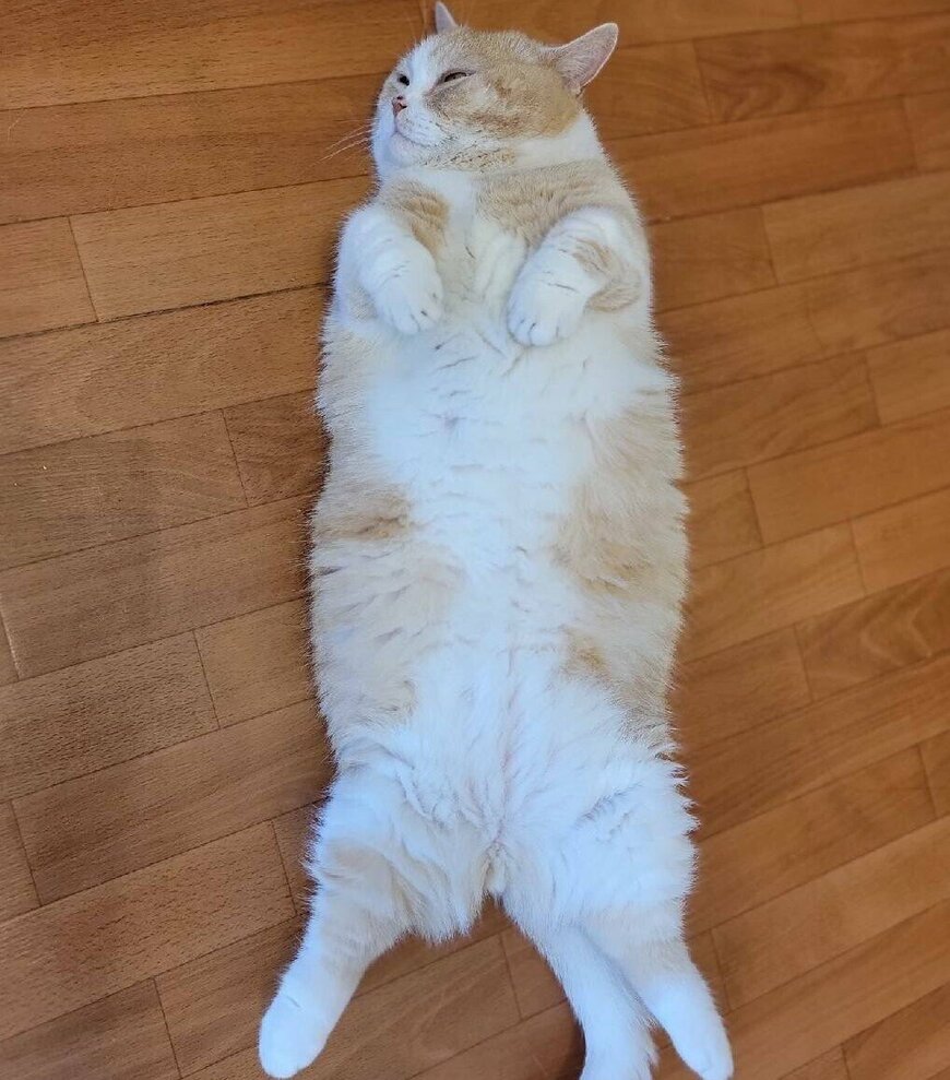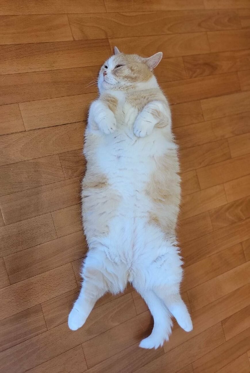 「朝からへそ天ししまる」というツイートとともに投稿されたのは、1枚の写真です。
