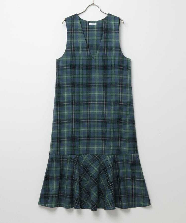 マーメイドジャンパースカートは、スタイルアップも期待できるアイテムです。深めのVネックが顔周りをすっきりと見せてくれます。