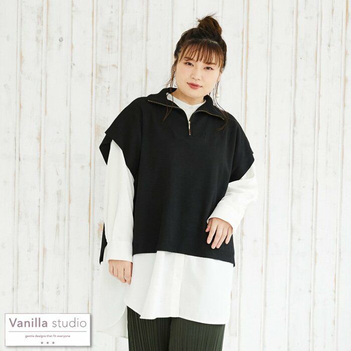 【レディース ハーフジップニットベスト(バニラスタジオ)】1639円(税込)
