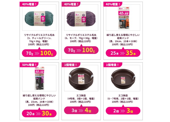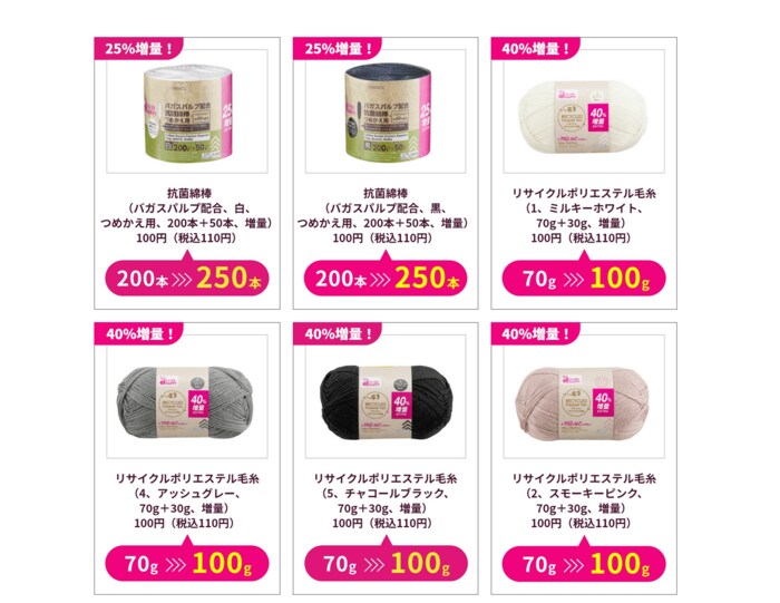 「ダイソー様感謝!」の声多数。ダイソーの増量キャンペーン