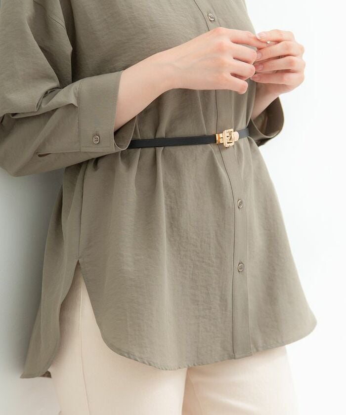 女性らしい繊細さを感じる細身の「マグネットバックルベルト」。バックルも小さめで控えめなゴールドなので、おしゃれ着や通勤着のアクセントにぴったりです。マグネットで留めるバックルなので、長さ調節は背中側にあるアジャスターで行います。ベルト穴が見えないので、お腹周りのサイズが目立たなくていいですね。