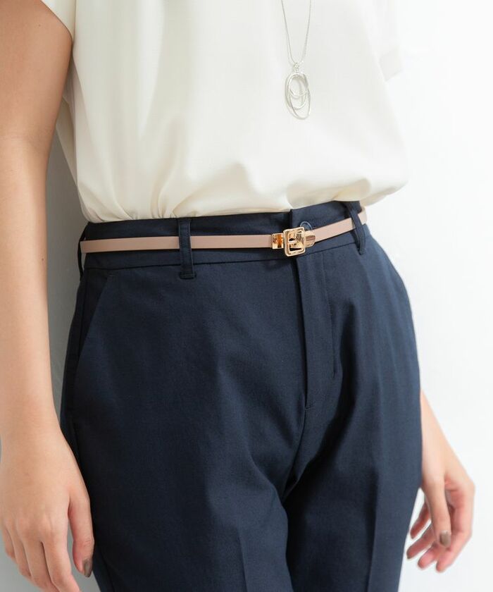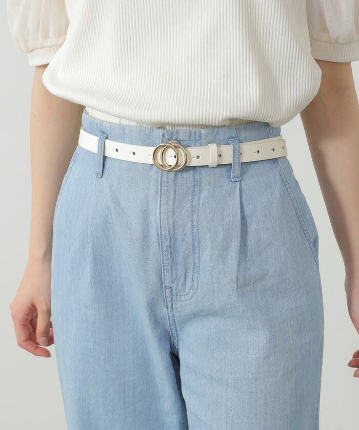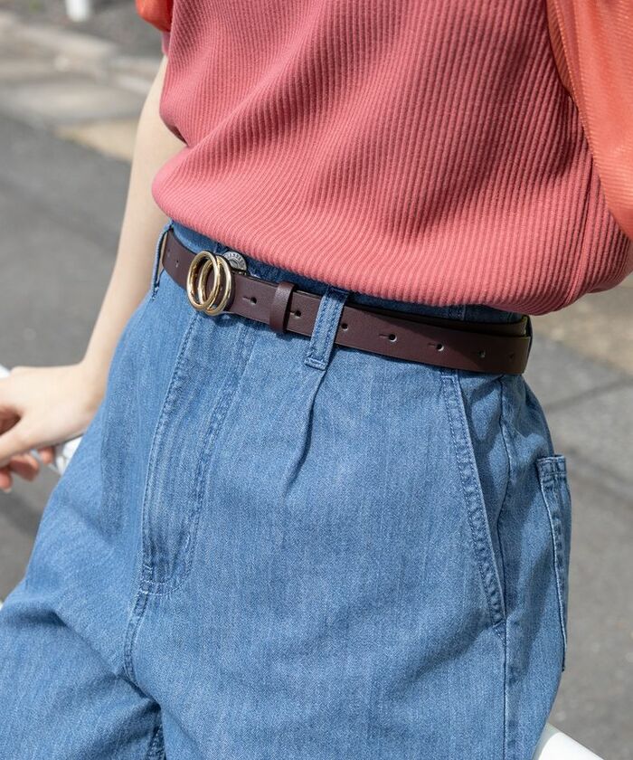 「ダウブルリングベルト」は2つの円が重なり合った形のバックルが印象的。メンズのようなゴツさがないにもかかわらず、存在感があるのでばっちりウエストマークとして機能してくれます。