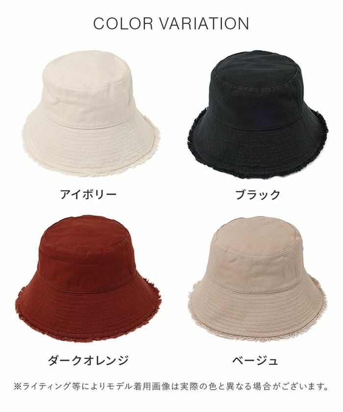 ユーズドテイストが新鮮な「フリンジバケットハット」はミニマルなデザイン。日差しから肌をカバーしながら、顔周りにこなれ感と動きをプラスしてくれます。内側にサイズ調整用のテープがついています。