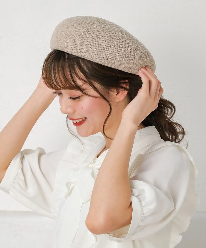 ふんわりとした形の「ベレー帽」は可愛らしい雰囲気をプラスしてくれます。サーモニット素材でメッシュ生地を使っているので、比較的通気性がよく蒸れにくいのが特長です。