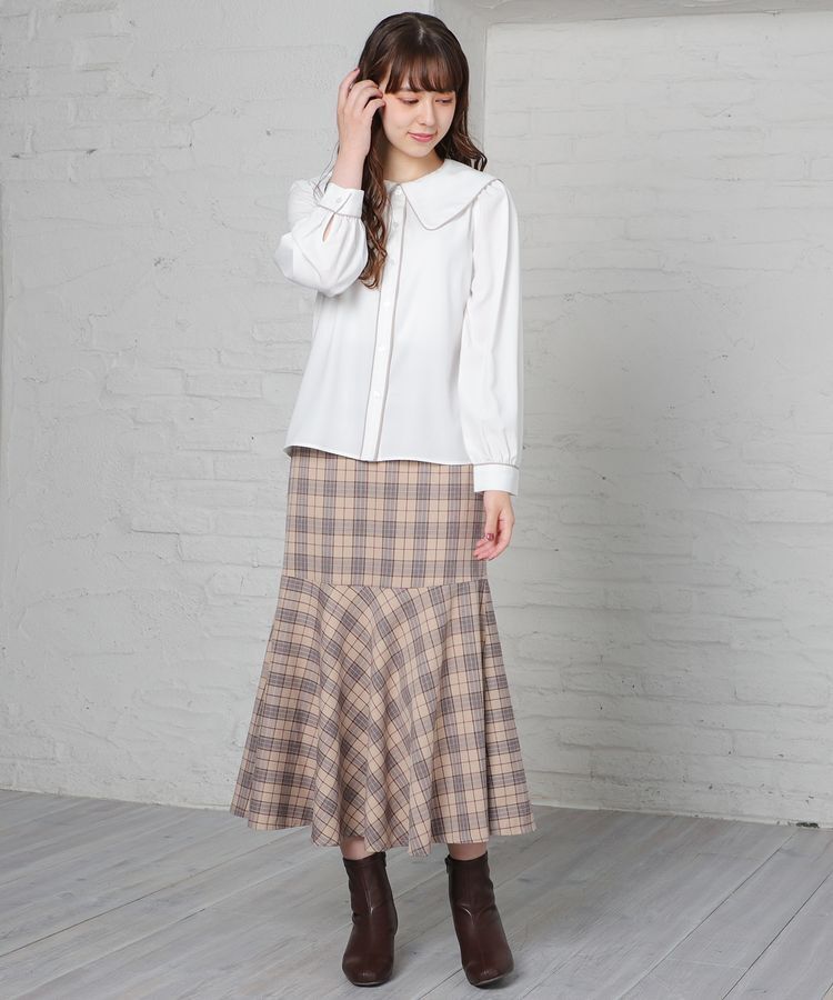 さりげない配色がおしゃれで、1枚でも様になりますが、ニットやベストを使ったレイヤードコーデとの相性も良さそうです。
