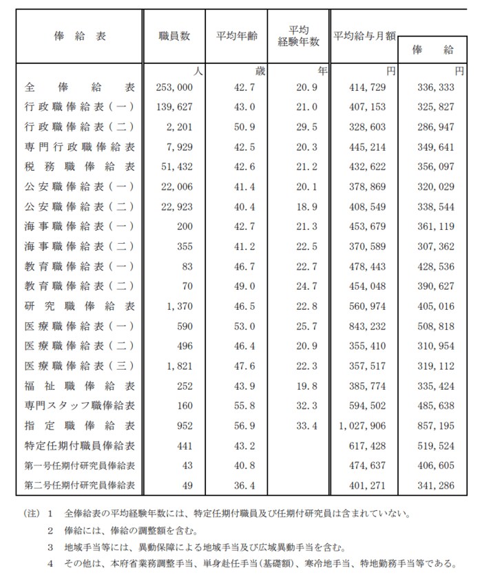 - 平均給与月額(俸給及び諸手当の合計):41万4729円