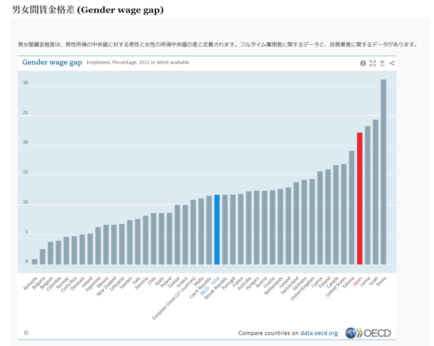 日本の男女間賃金格差はOECDでワースト4位