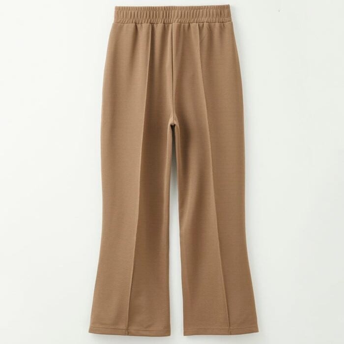 ファッションインフルエンサー、yumiさんコラボのセミフレアパンツです。センタープレス風のピンタックが入っています。きれいな生地は程よい肉感の素材を使用。つるんとした質感で楽ちんな着心地なのにきれいなシルエットが叶う注目のアイテムです。