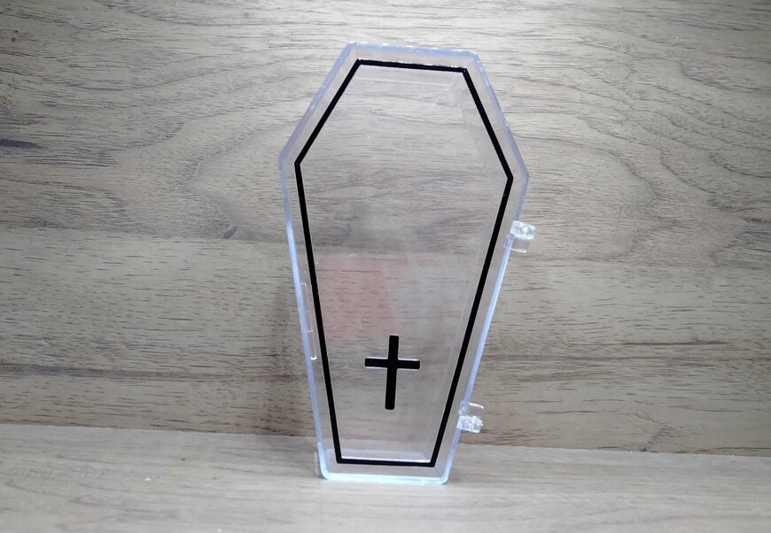 こちらがセリアで購入できる「棺型小物入れ」です。アニメや漫画でよく目にする定番の形のアイテムとなっています。