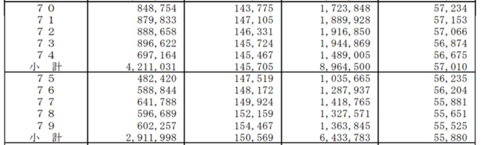一歳刻みで見ることで、徐々に受給額が上がっていることがわかります。