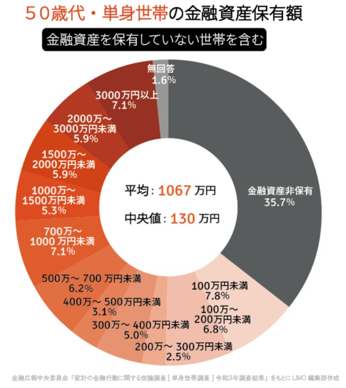50代・単身世帯の貯蓄(金融資産を保有していない世帯を含む)