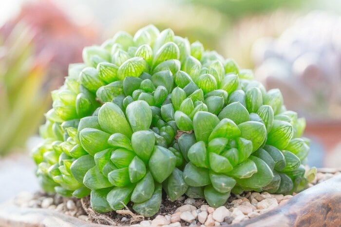 別名「雫石」。ハオルチア・オブツーサのキラキラ感がお洒落!