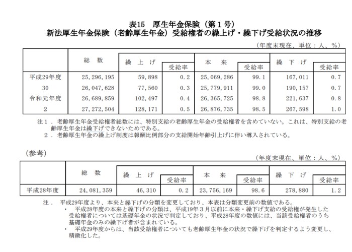 実際にどれくらい繰下げ受給をする方がいるのでしょうか。厚生労働省「令和2年度 厚生年金保険・国民年金事業の概況」(2021年12月公表)より確認します。